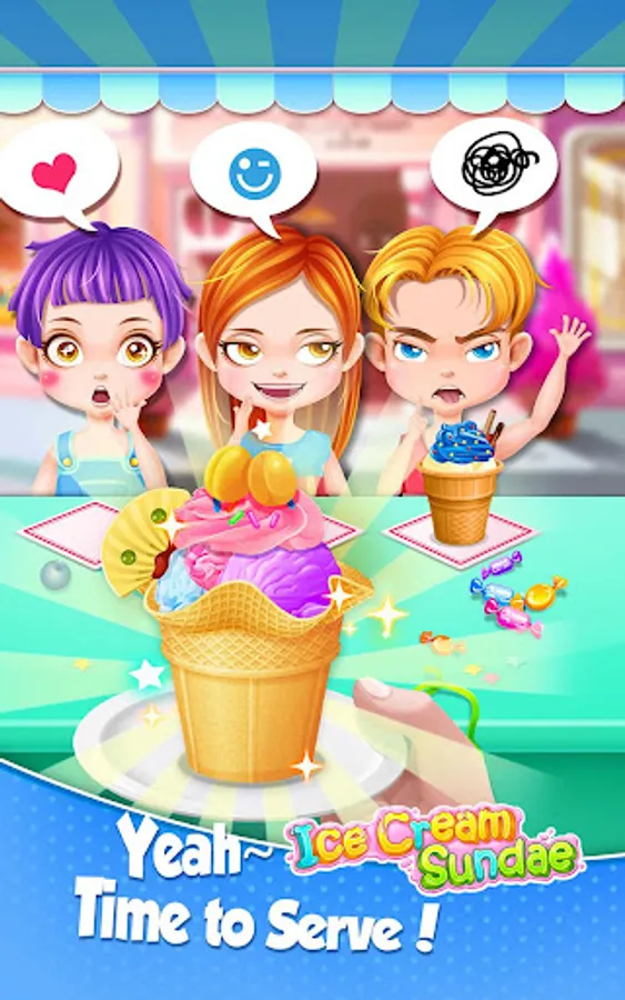 - Serve the customers frozen sweet desserts according to their orders, earn hearts, to unlock the access to other places for your icy food shop!