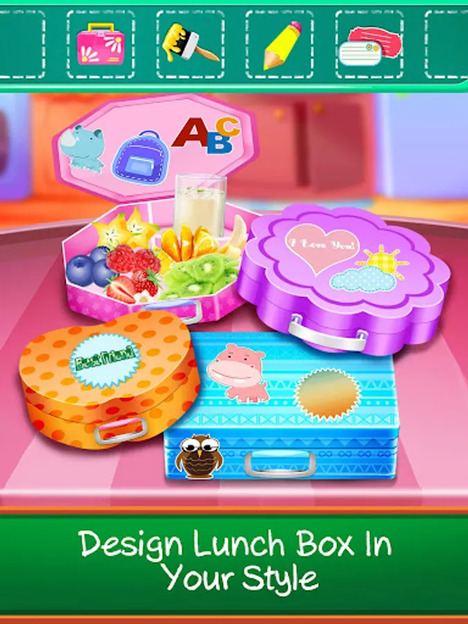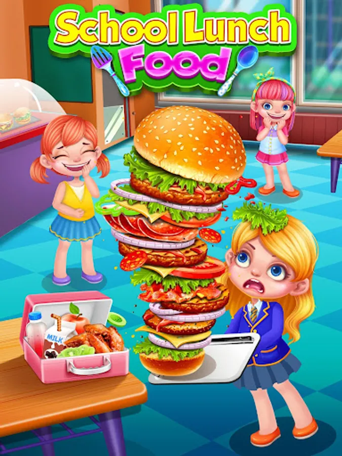 - Create your school lunch food with tons of side dishes, fruits and stickers.
