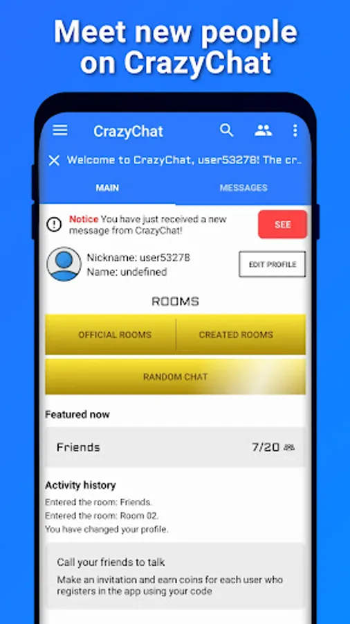 ⚠ Attention: because of the recent release of CrazyChat, chat rooms are still mostly empty.