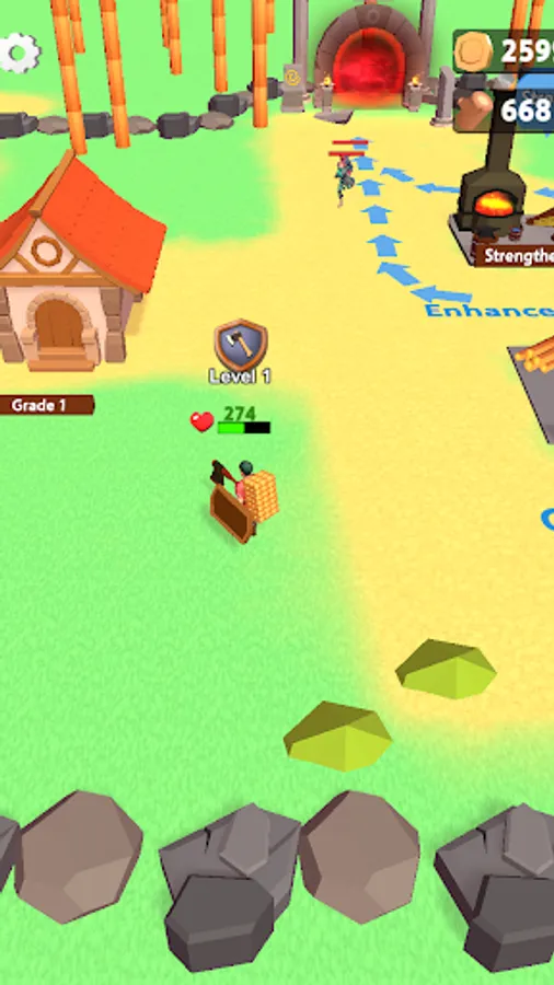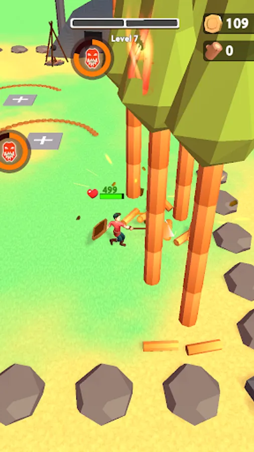 Start with an axe and build your base from scratch. Fell trees for your base, then fell enemies that aren't to your taste! You'll need your wits and talent to fend off intruders and forge the strongest base!