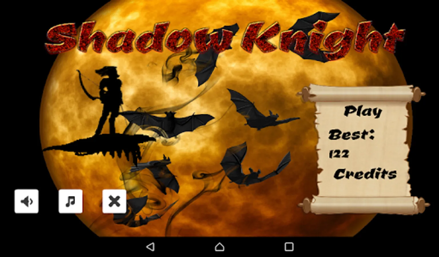 On a full moon day our knight and his little brother were playing together near a cave. Suddenly some rogue ninja attacked knight and his little brother for their fun. The elder brother managed to avoid all the shurikens and ninja attacks with his super skills to vanish in shadows and saved his brother, but then one ninja threw a flame shuriken into the cave to release the big evil bats colony from cave and made them to attack the two brothers. Knight skills to vanish in shadows were of no use against bats, he killed many bats with his flame arrows but at the end the evil bats killed his little brother and flew away. This made elder brother angry and he decided to kill all the evil bats. Then our hero started his journey of revenge on a eagle with a bow and arrows of fire.