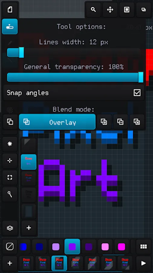 - Applying up to 6 color blend modes: normal, overlay, lighten, darken, multiply and add