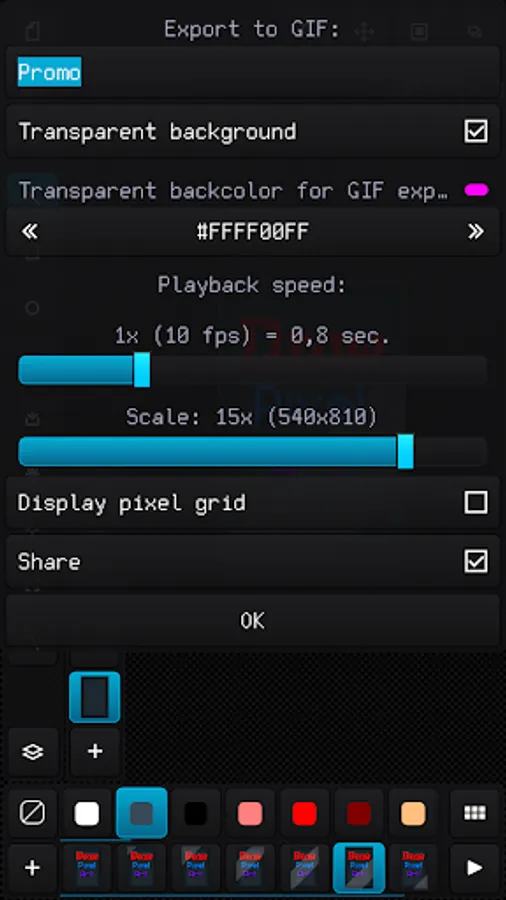 Easy raster graphics editor optimized for work with pixel precision images (pixel art design) with the ability to create animations and work with sprite-sheets.