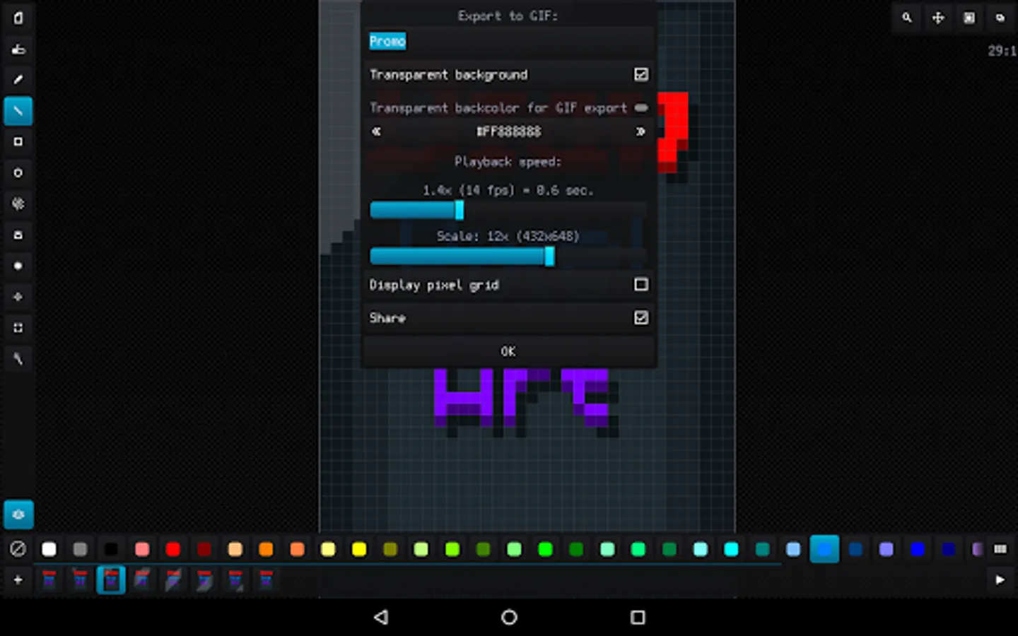Easy raster graphics editor optimized for work with pixel precision images (pixel art design) with the ability to create animations and work with sprite-sheets.
