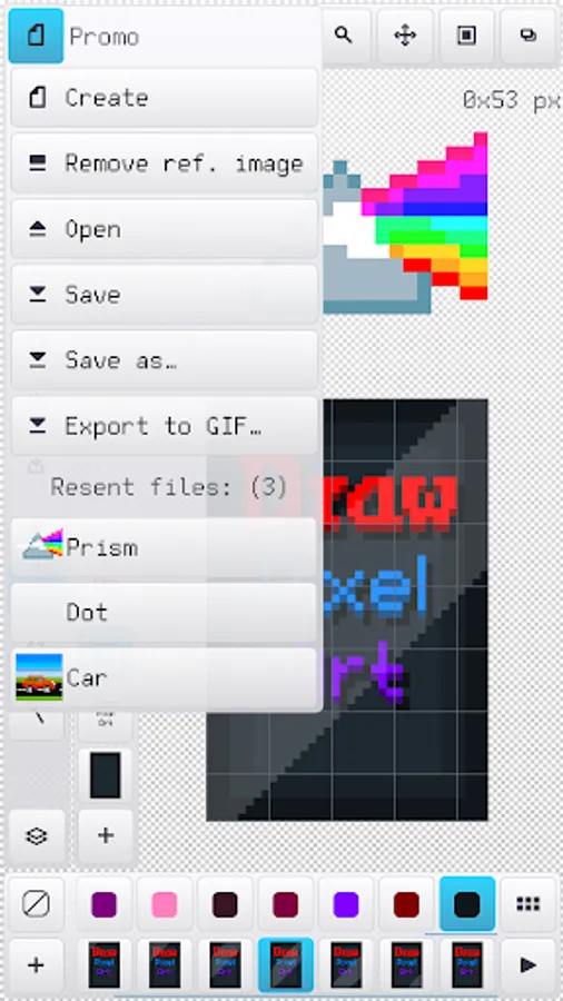 - Quick access up to 20 recent image files and palettes