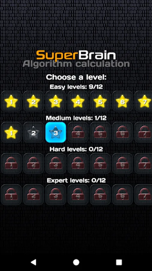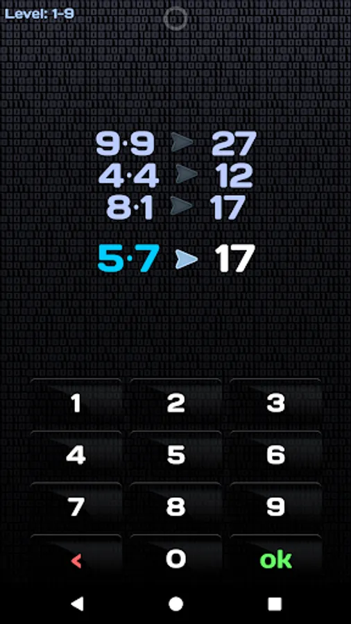If you enter the correct result, you'll unlock the next level and so on. Otherwise, all numbers in the task will be changed randomly and you are offered to guess algorithm again.
