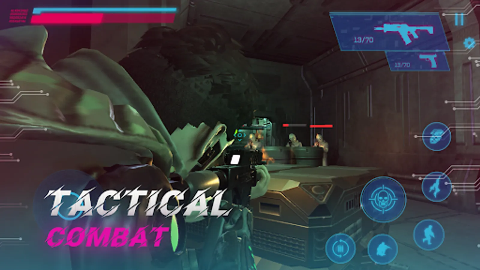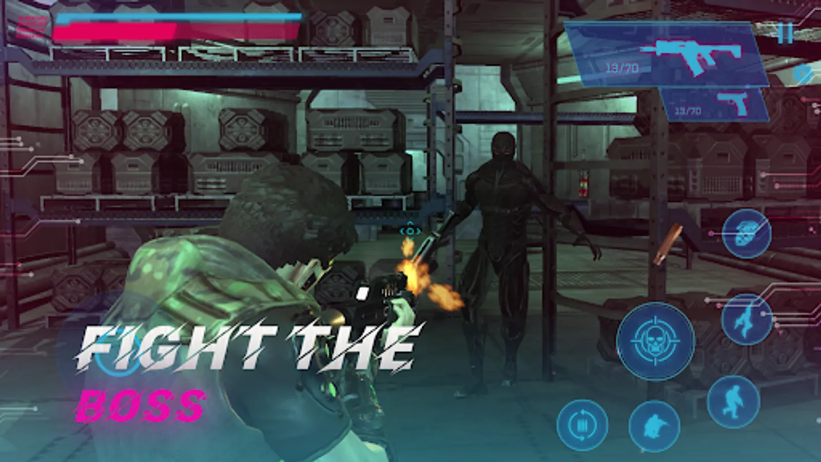 Defeat powerful enemies following your path of the warior. Choose your fighting style, use a weapon, cyber interface for ranged combat, and cyber-empowers to destroy enemies in a melee fight.