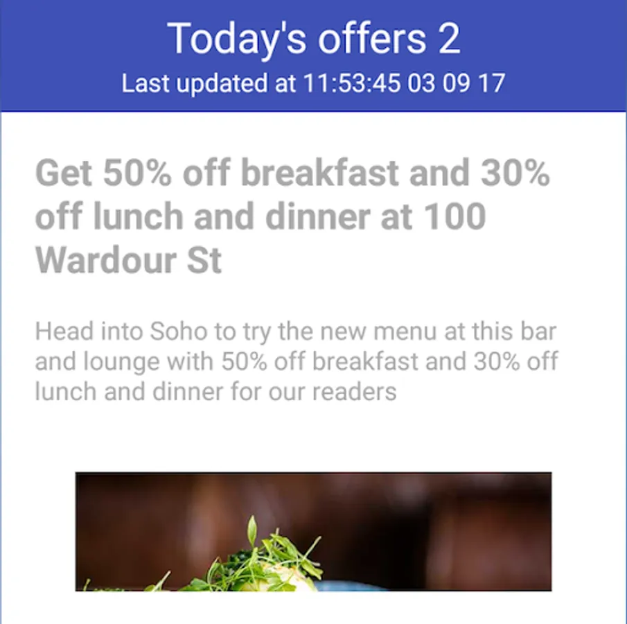 Never miss a soft opening or a restaurant discount! Just add the widget to your home screen and you'll have an up-to-date list of the soft openings and new restaurant launch with discounts! The widget gets the information from Hot Dinners website (only London).