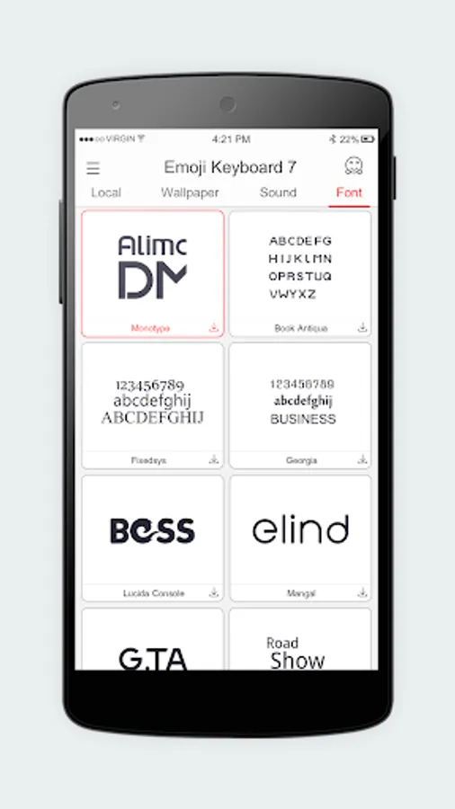 - Custom keyboard font.