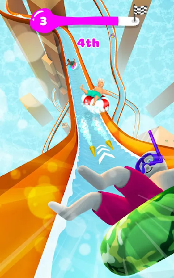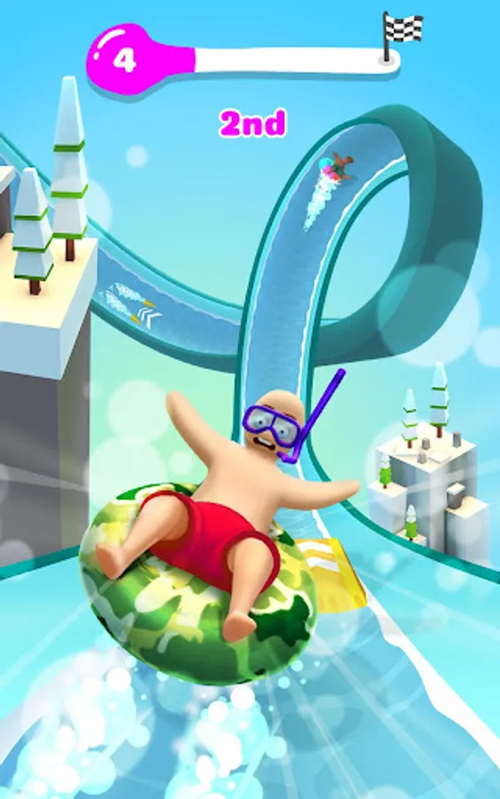 Start each Slippery Slides water park fun race level last and finish 1st in this water slide flippy race!