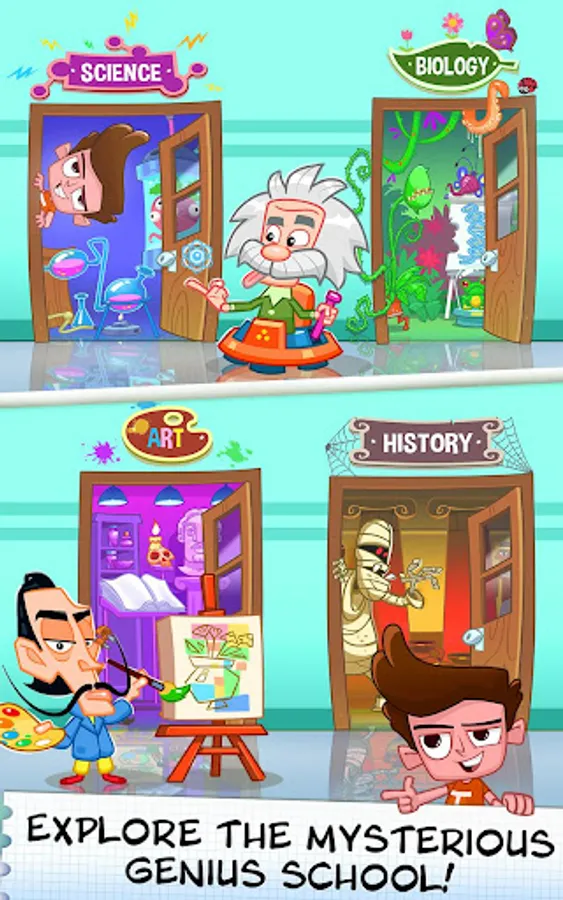 > Help Tom master the crazy worlds of biology, history, art, science and sports!