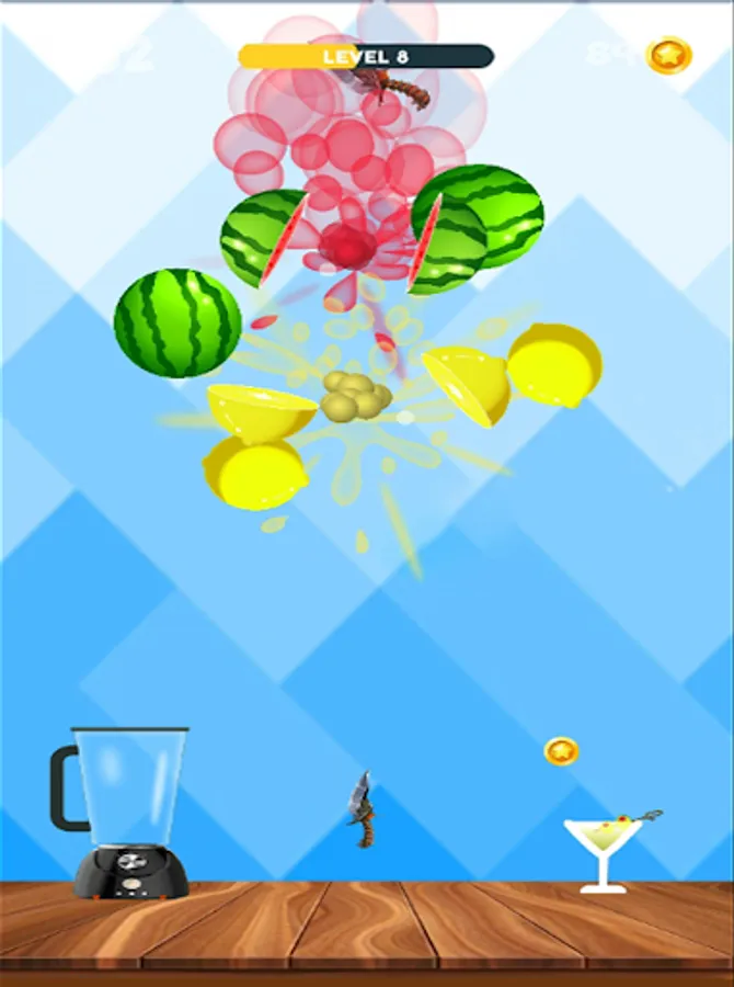 • Slice fruits by tapping on the screen.