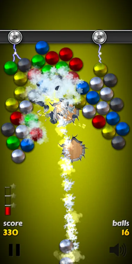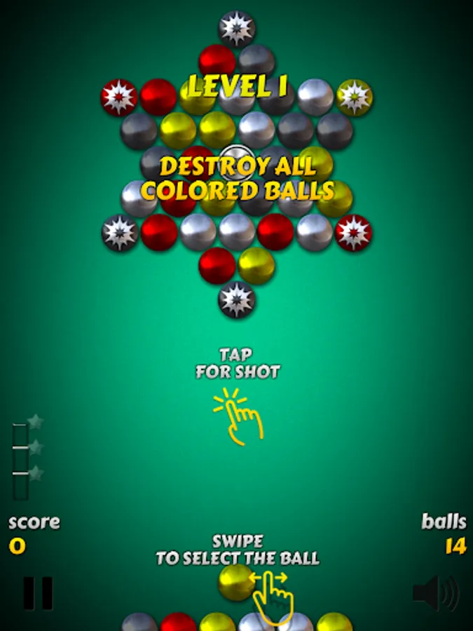 All levels start with a cluster of magnetic balls. You can see the next color at the base, and you need to figure out which colors match so you can fire into the cluster of magnetic balls above.