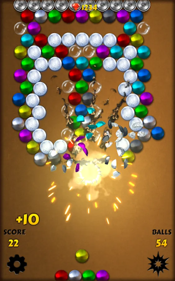 • Match 4 or more colored balls in a row to get special bonus balls.