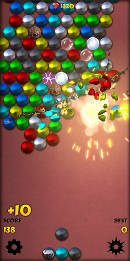 All levels start with a cluster of magnetic balls. You can see the next color at the base, and you need to figure out which colors match so you can fire into the cluster of magnetic balls above.