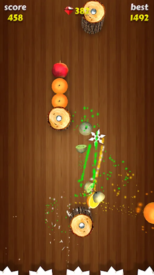 Travel with the shuriken as high as possible! This jumping upwards game will test your reaction speed and hopping skills. You will be challenged to leap from beam to beam while slicing fruits.