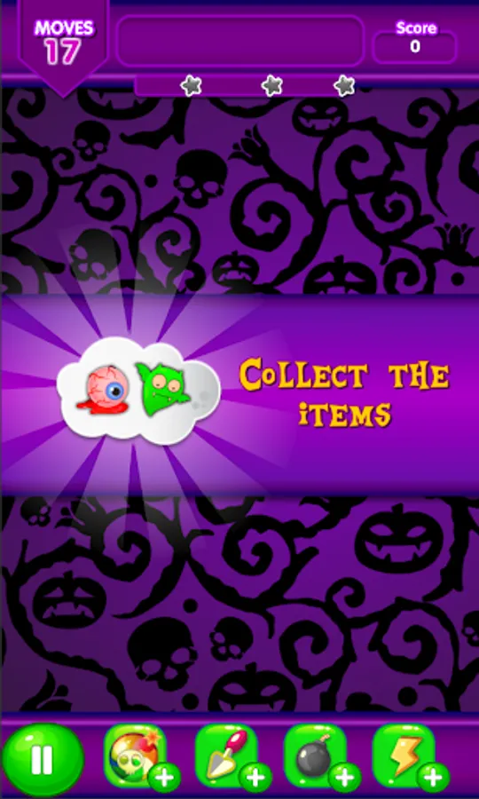 Swipe finger through three or more same items to collect them. Match 6 or more items to get the power-ups.