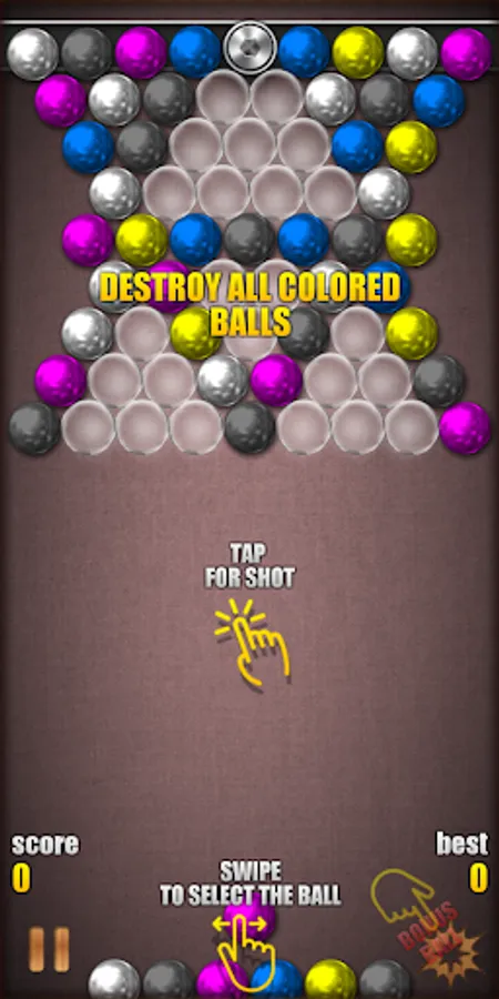 • Match 4 or more colored balls in a row to get special bonus balls.