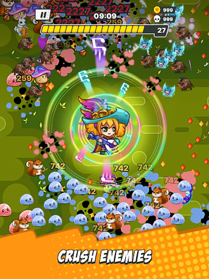 Control your character with an on-screen joystick: their weapon will automatically attack the enemy closest to you.