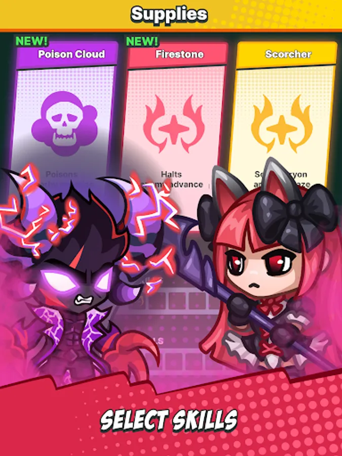 Trust your intuition to choose your ultimate hero to wage the war on the demons. To name a few survivors, here is Shadow: his signature style of action is brandishing the deadly kunai blades. Or try the Bard: her songs are to die for (literally). Now, there’s also the Vampire whose cursed sword always finds its victim. See which of the Heroes is the best demon slayer for you! Upgrade them and awaken their hidden abilities to spice up the fight!