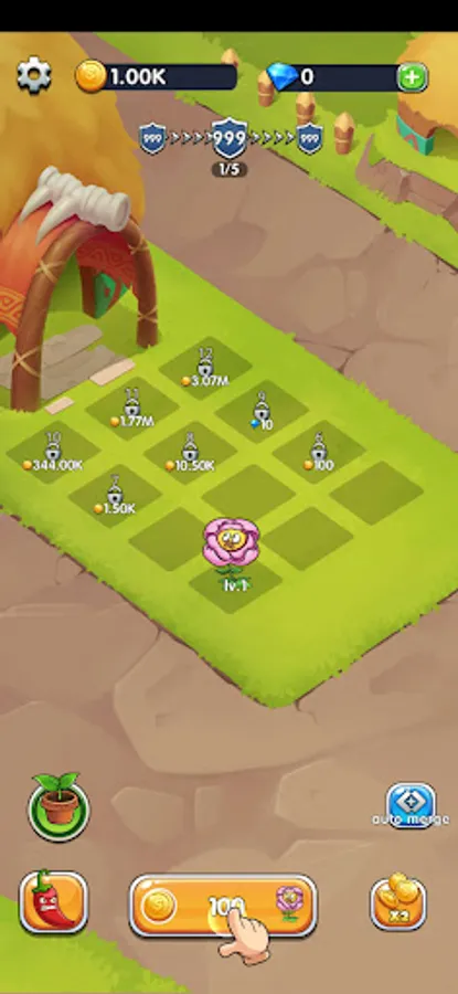 grow plants in your farm, merge and upgrade to unlock new plants, challenge bosses to defend plants.
