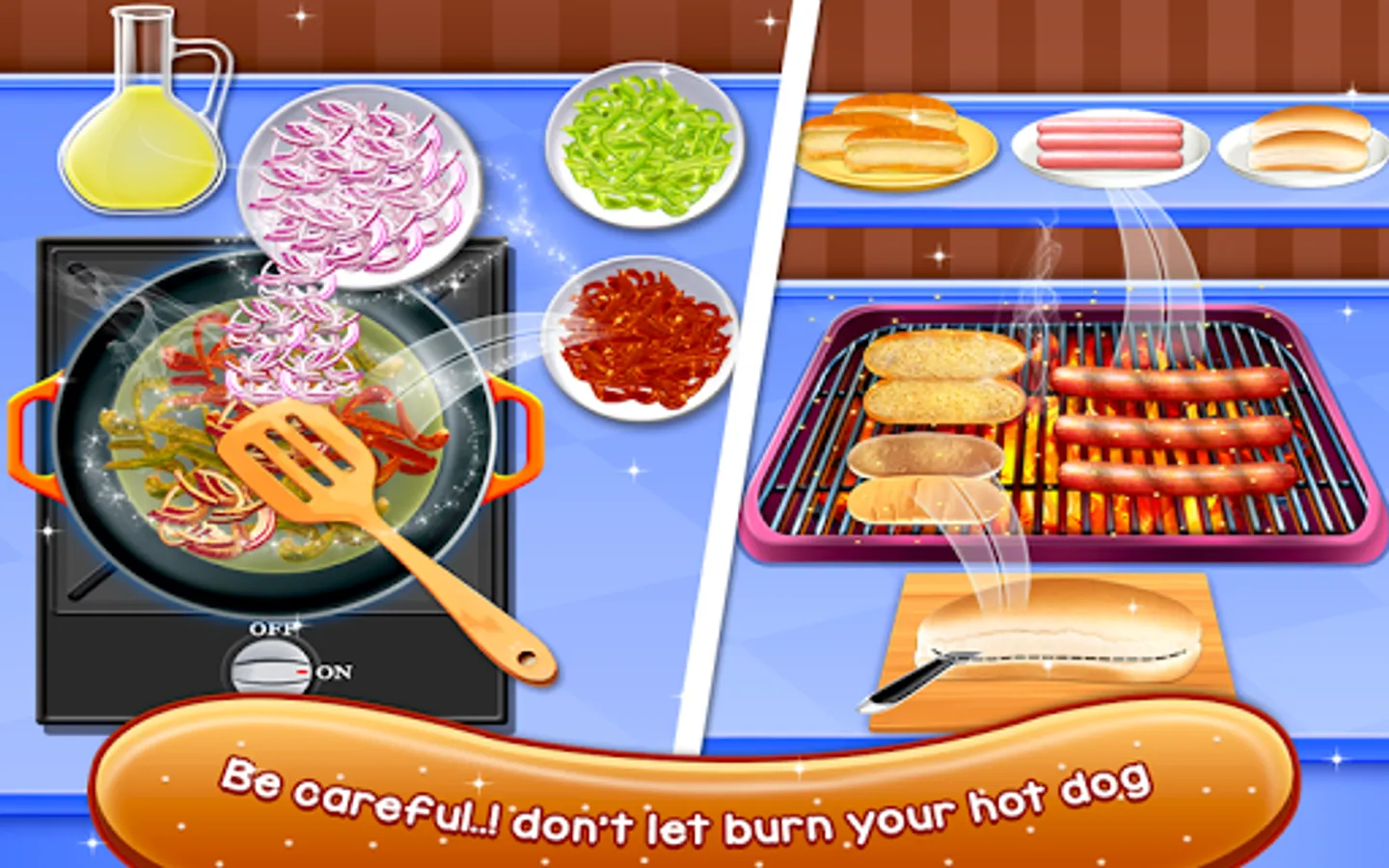 Try out all three types of hot dog and prove that you are the best hot dog chef! Street food is so popular now a days so it'll be your chance to become to most famous hot dog truck chef and serve your customers daily!