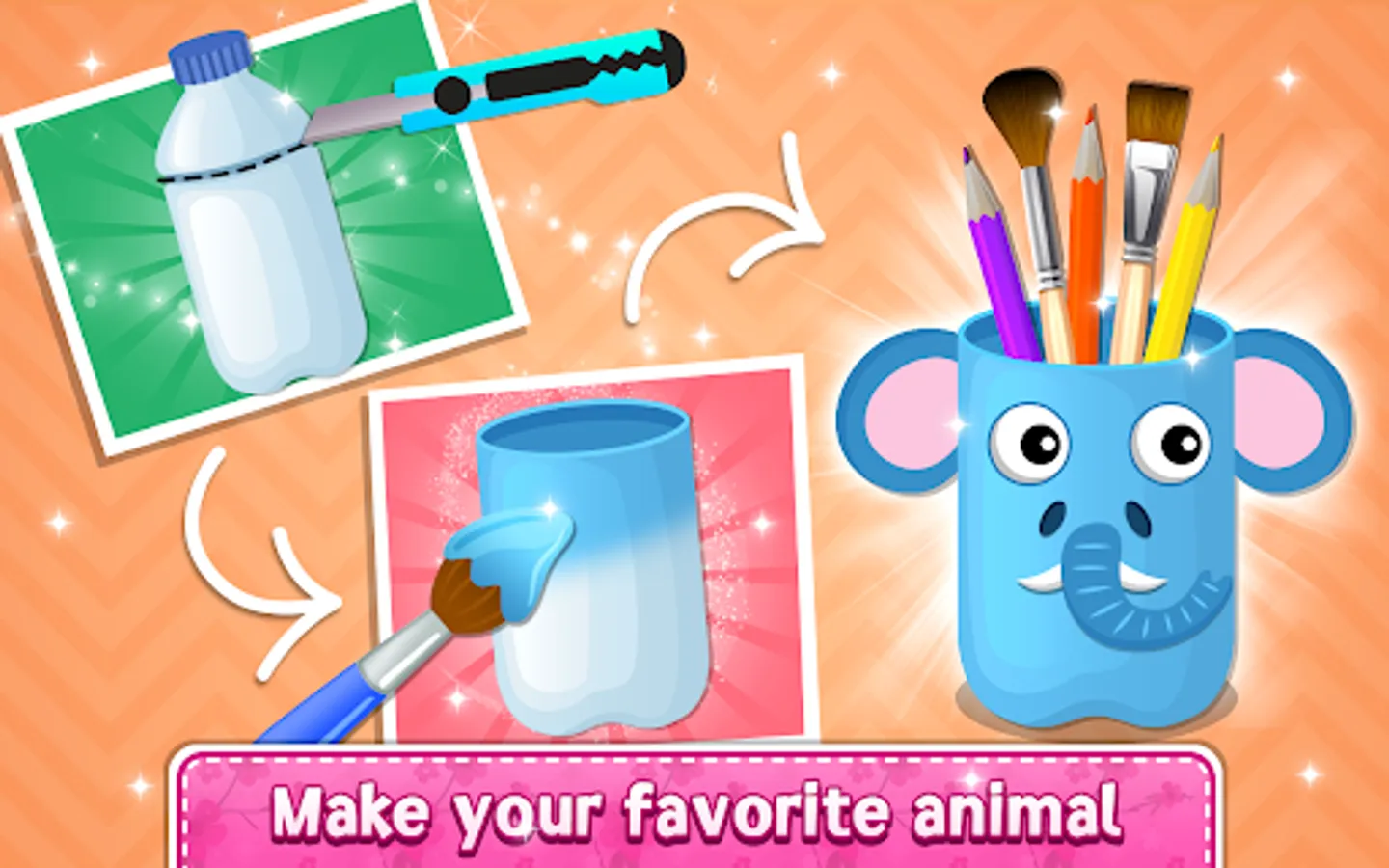 Kids Craft DIY game is designed for kids under age of 3-4 to make handcrafts from waste materials at home. Kids' will learn to make aquariums, flower pots, necklaces, pen stands, photo frames, and other kids craft DIY, through which kids' creativity grows fast and makes their childhood colorful and creative.