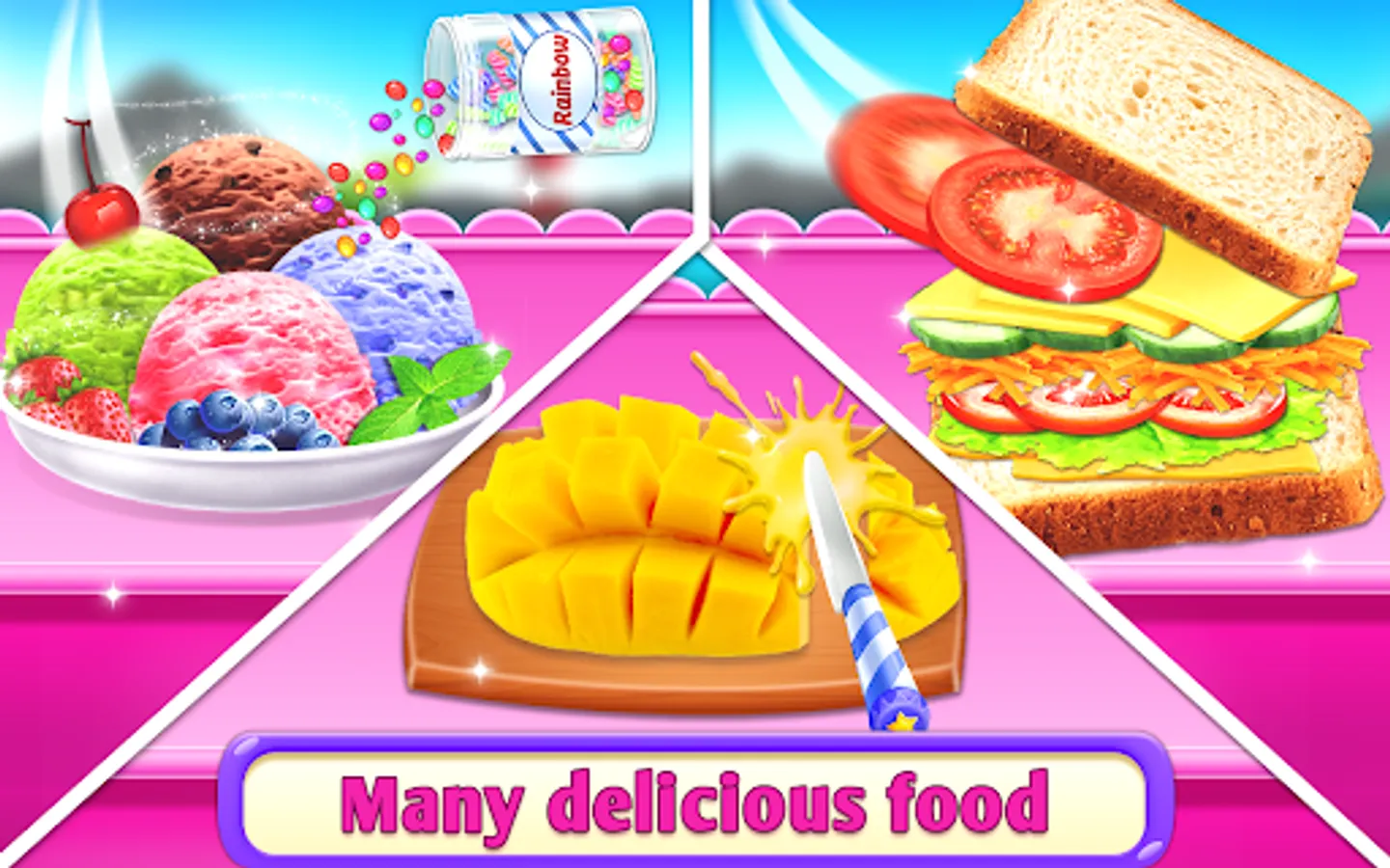 In summer vacation fun resort, make foods of your own choices! Make sandwich, ice cream or fruit salad with tons of ingredients! It's up to you!