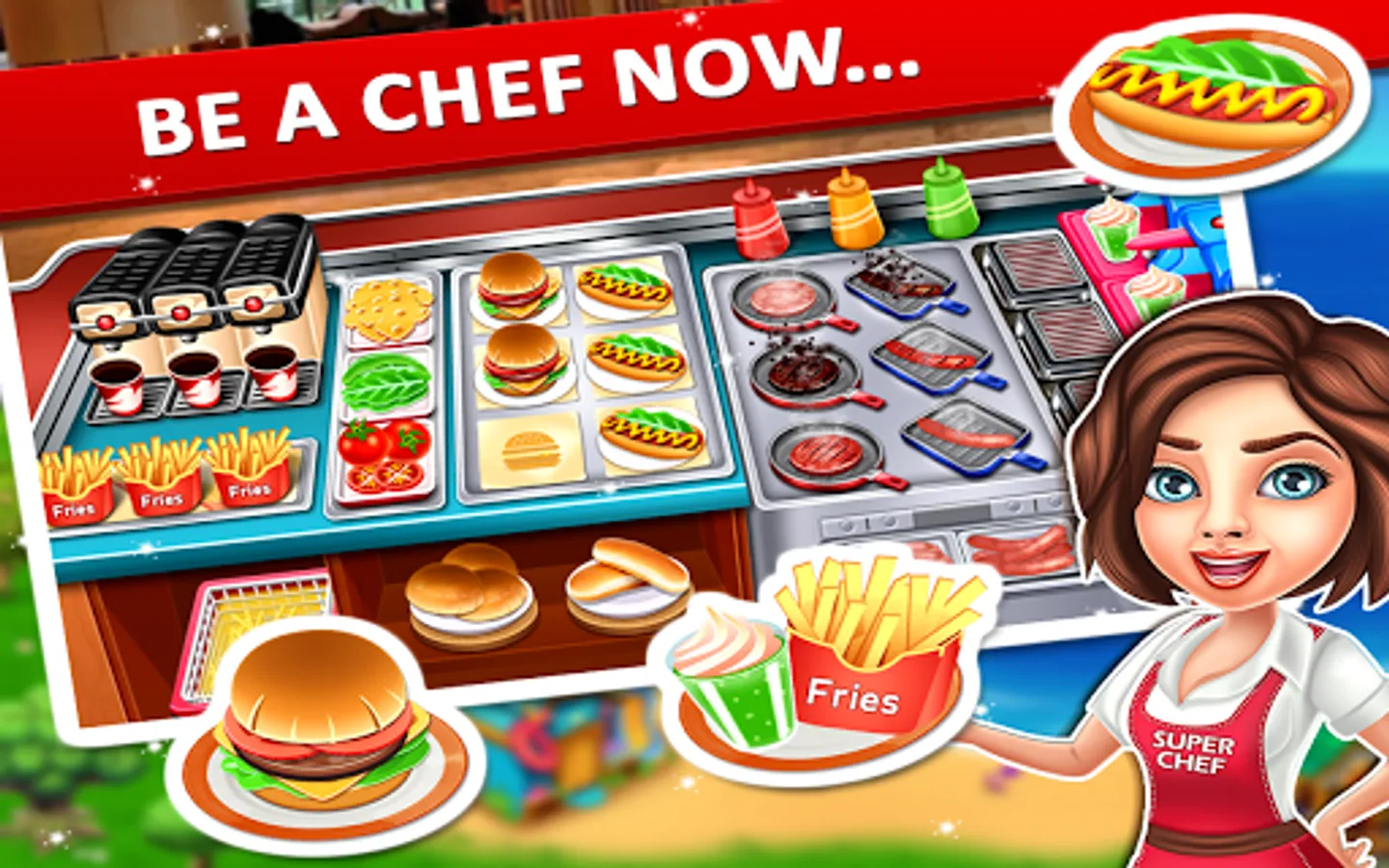 Welcome to Super Chef Cooking game!!! Let's have experience the joy of opening your own street food restaurant and cafe. Serve the delicious food to your customers in this time management cooking game. Join us in this cooking adventure journey and cook delicious burger, hotdog and French fries. It's an addicting time management cooking game which you'll enjoy endless gameplay.