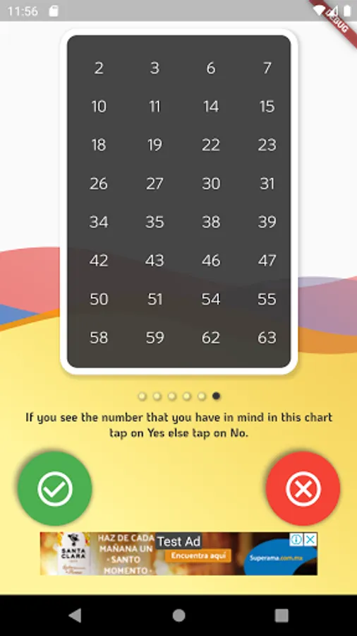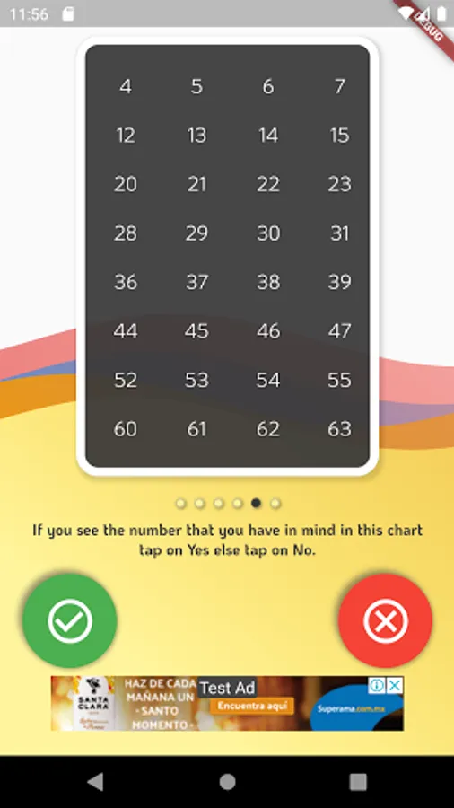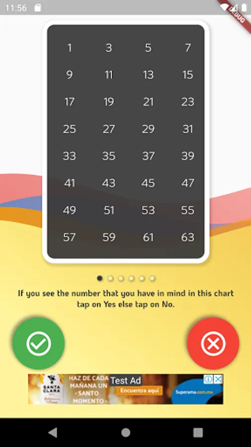 This app is based on - The Binomary Card Trick. A simple but fun card trick. The trick is simple, you choose any number from 1 and 63. Then indicate if the number on your mind is in in the series of card that will be show to you, in the app you use the right and wrong button to indicate if the number in your mind is on the card or not. Finally, we will show you the number which is in your mind. Sounds line fun? Go ahead and check it out.