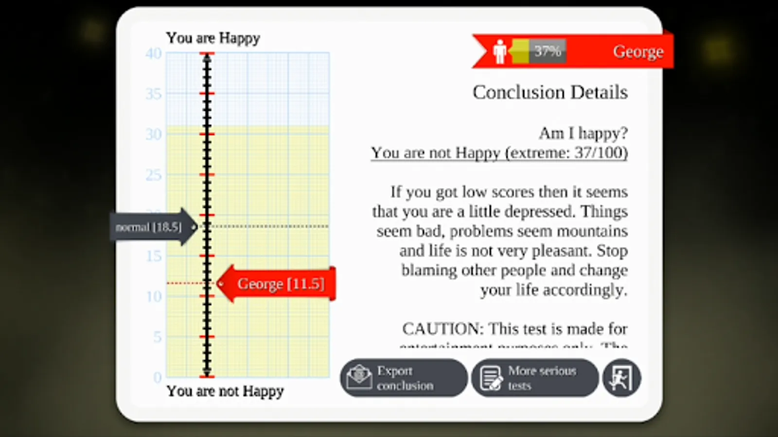 It has a series of tests which you have to go throw to achieve your personal score. These tests are very innovative and are created in a light funny way such that nothing gets too serious or boring. Once you finish the test you will get the score card of your analysis.