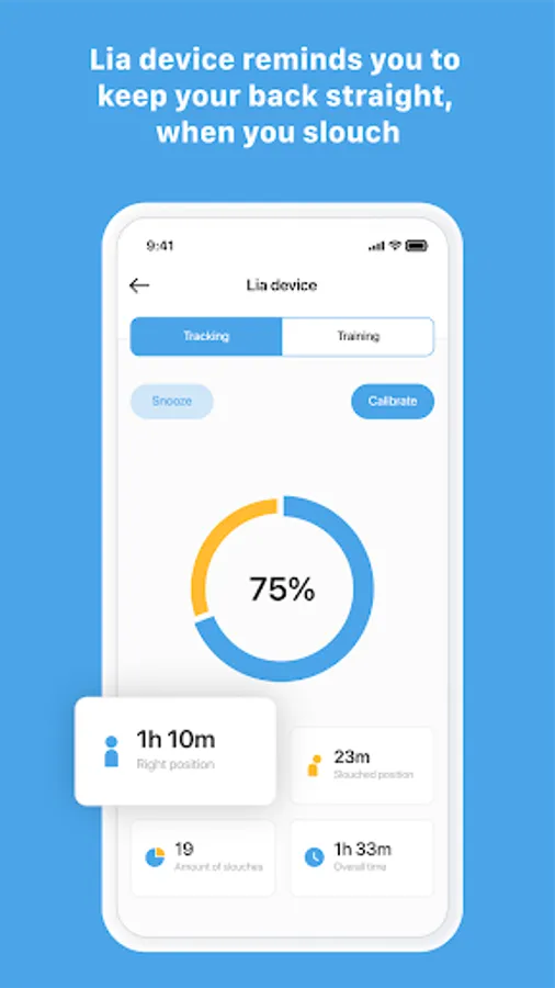 Slouching, slumping, and other types of bad posture can cause muscle tension, as well as back pain, joint pain, increased stress, and reduced circulation. Regular posture workouts could help you improve your spine core, and our posture coach will keep you motivated and engaged. Lia is for people who want to:
