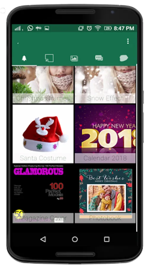 Get a awesome collection of charming New Year and Christmas photo frames and effects with 'Christmas Photo Frames'! You will definitely find an effect that suits your needs beautifully designed templates. Make personalized Christmas cards easily and surprise all your friends during the holiday season!
