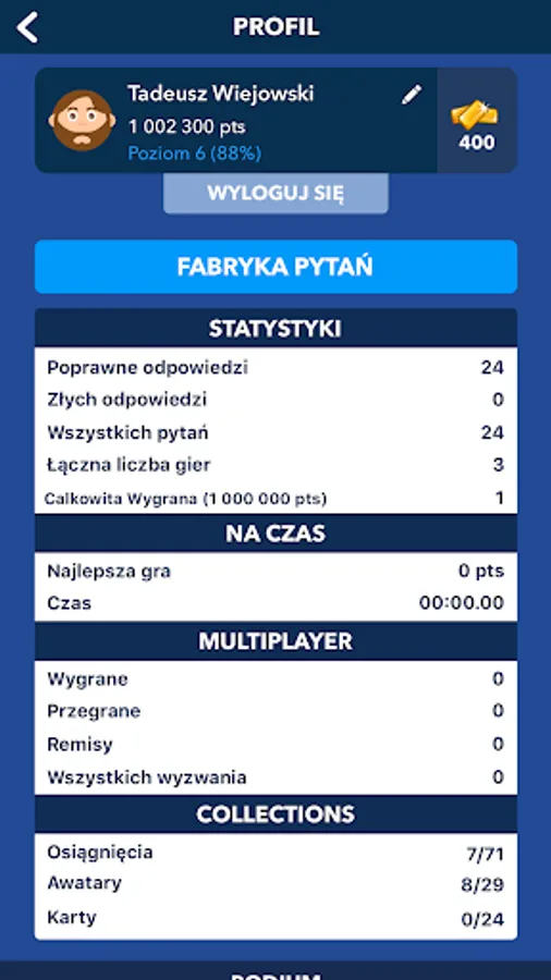 The objective will be millionaires: answer the 15 questions and win a million! I never get bored, because the number of questions is growing by the day!