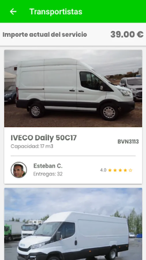 · The profile of the Vanner: Each carrier has a verified social profile since we are the ones who register them on the platform, allowing us to know useful information before making a reservation to request their services (vehicle photos, registration, profile photos, valuations, vehicle capacity, ..)