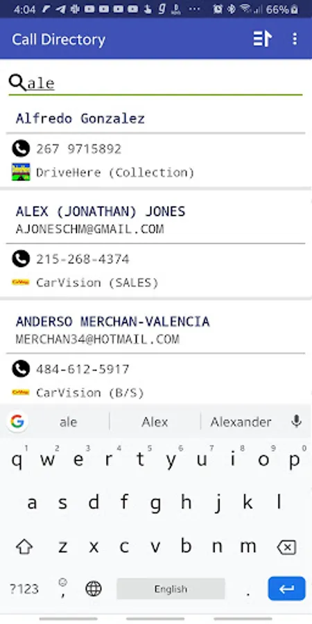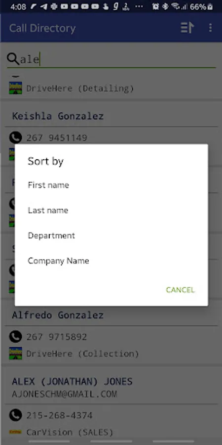 Via CallDirectory user can call to the specific number also share the contacts and email to the specific user. CallDirectory allows sorting and the searching functionality of the contacts like searching and sorting via Firstname, Lastname, Company name, Departments, etc..