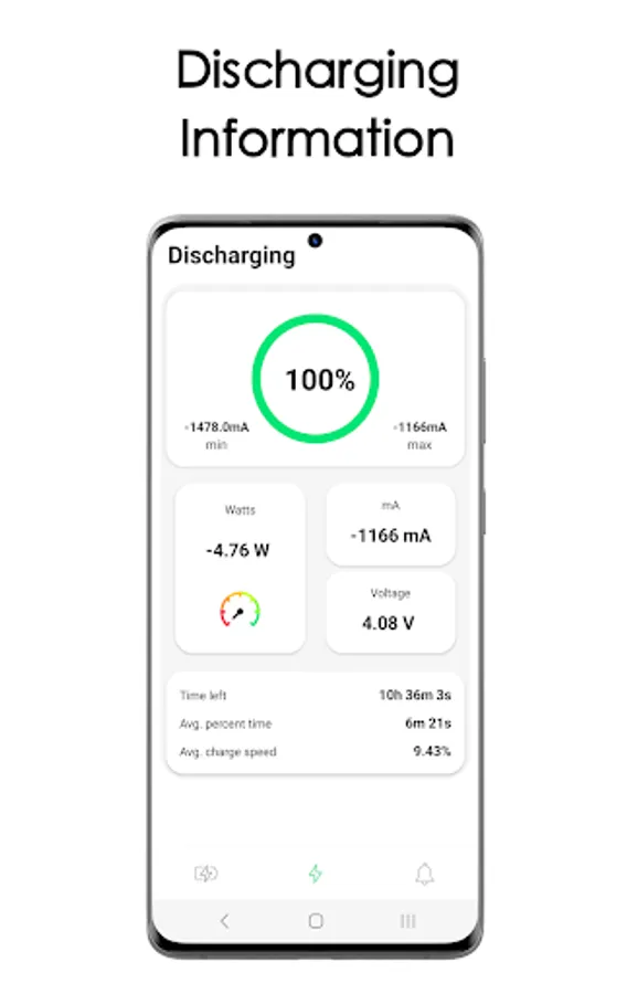 Also get relevant information about battery discharging. Estimate time for a full charge, or know the time when your phone will run out of battery with this simple app