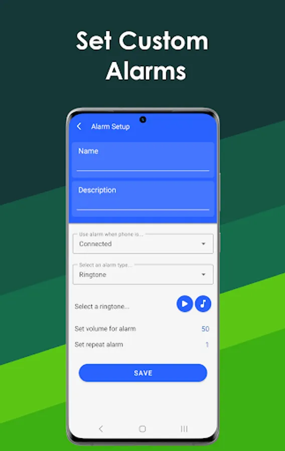 This alarm can be set when phone is plugged in, unplugged, full battery alert or low battery