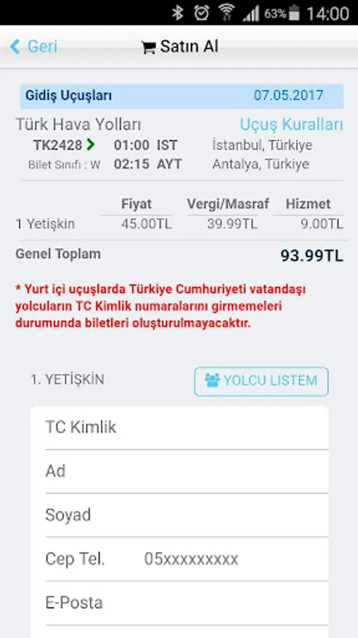 You can fill Hesaplibiletal.co application with passenger flights using Feature List again each time passenger information from the registered passengers will travel without having to enter passenger information automatically selecting the appropriate fields.