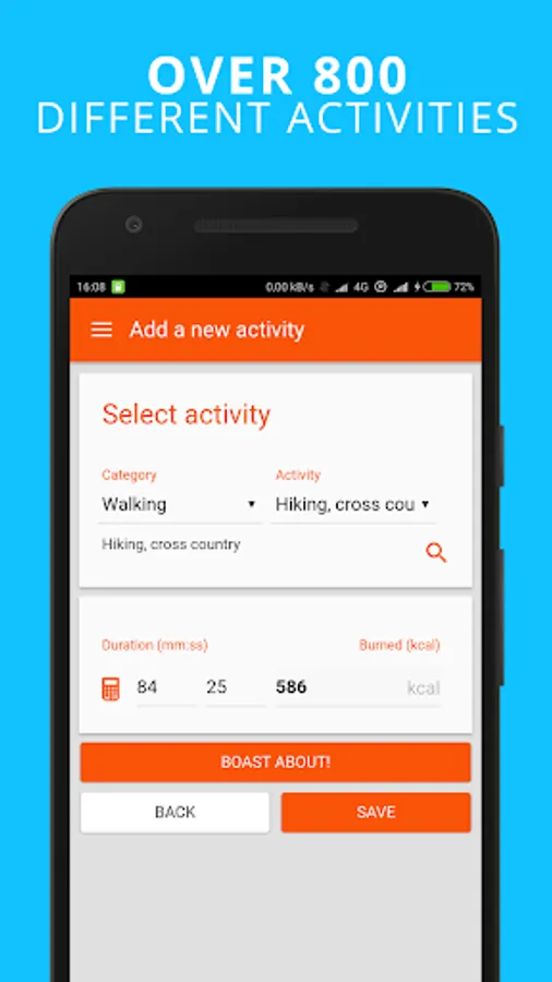 🔥 More than 800 different activities you can track or calculate their calories consumption