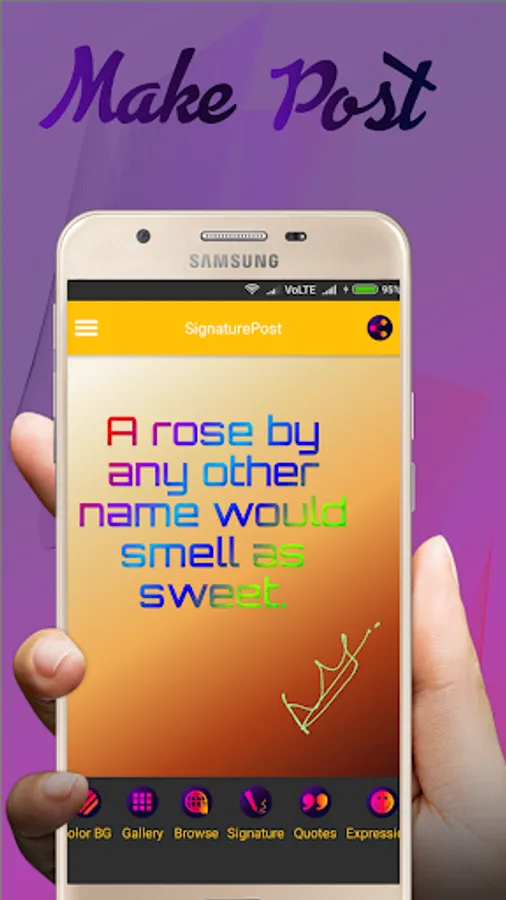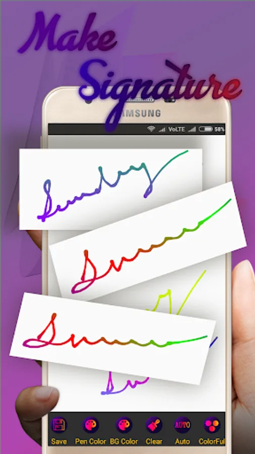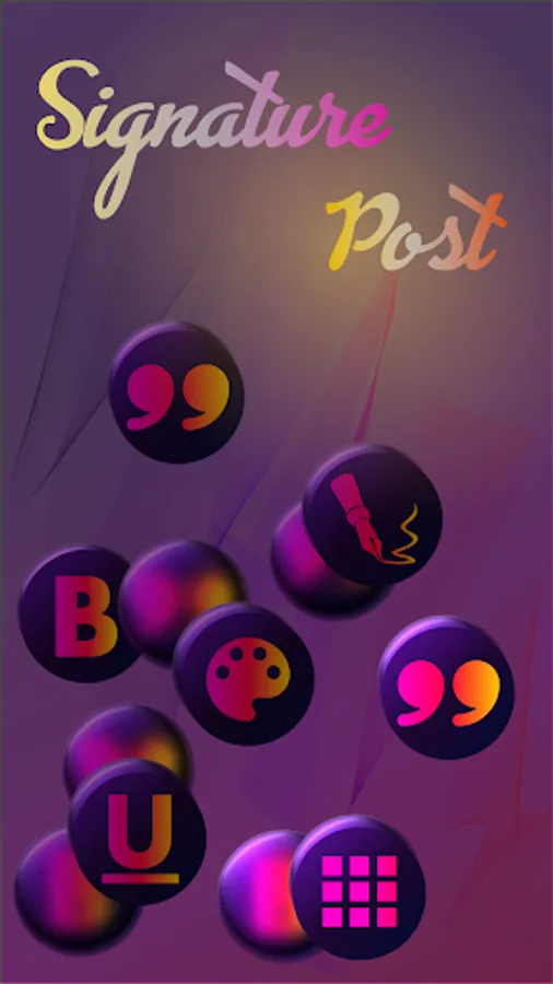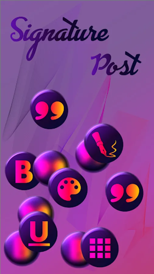 Want to post posts with signatures ? Want to create collection of signatures? Looking for signature maker app? Then this app is for you. With the app you can make signatures, create signature collection and save them for later use purpose. Also you can create multiple colored signatures with multi color backgrounds.