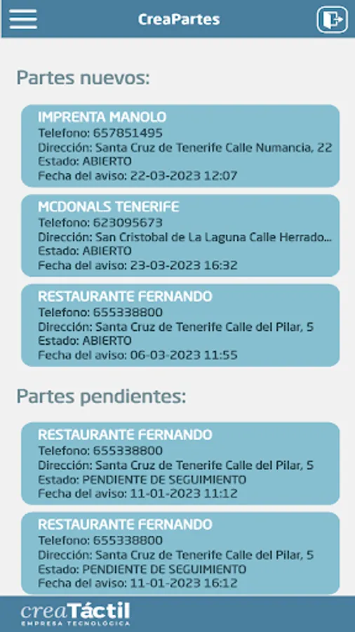 Report generation: The app allows you to generate customized reports with detailed information about maintenance and repair parts, including status, materials used, associated costs and labor used, which facilitates informed decision making and evaluation maintenance and repair performance.
