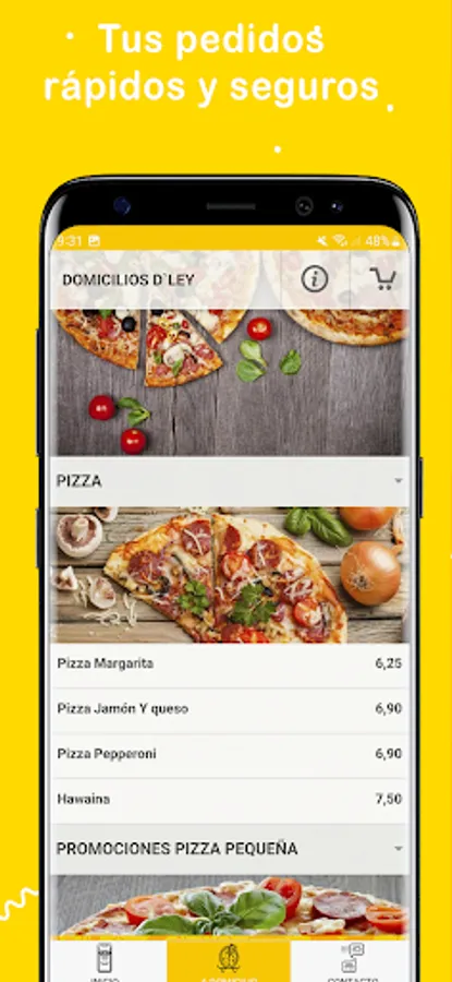 Do you love to order PIZZA? Use this app to personalize your experience and take advantage of the easiest and fastest way to order your favorite food. Features: - Online food ordering optimized for your mobile device. - Payment details are pre-filled, so you can order with just a few clicks. - Save several addresses and choose the preferred one at checkout. - Real-time confirmation of the order, which means that the restaurant staff confirms your order immediately, with the estimated delivery time. No middlemen, no confusing call center, no overpromising. This is only between you and D`ley Restaurant.
