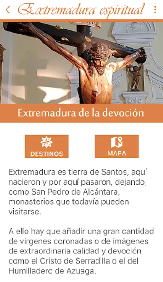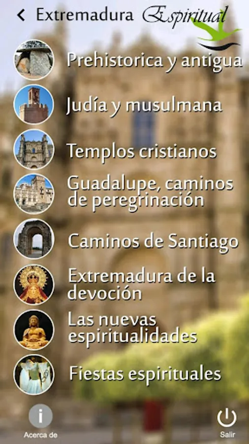 In this application you will find destinations of prehistory and antiquity; Jewish and Muslim roots; churches, basilicas, monasteries and Christian cathedrals; pilgrim routes; spas; Natural spaces; and Festival of Tourist Interest.