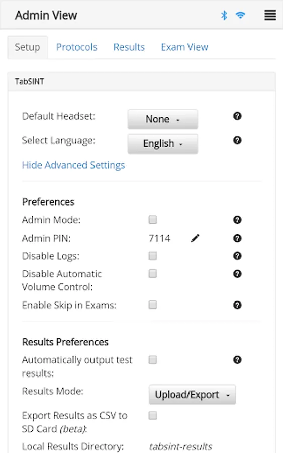 Exams and questionnaires are presented as a series of pages using a crisp and intuitive interface. Results are uploaded to a central server or saved locally on the tablet.