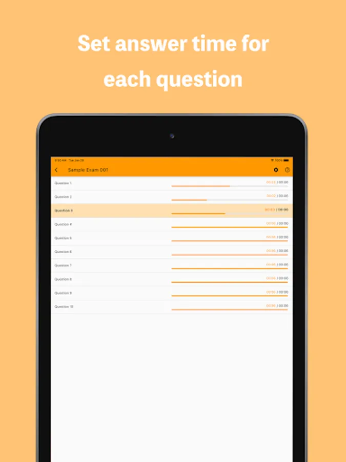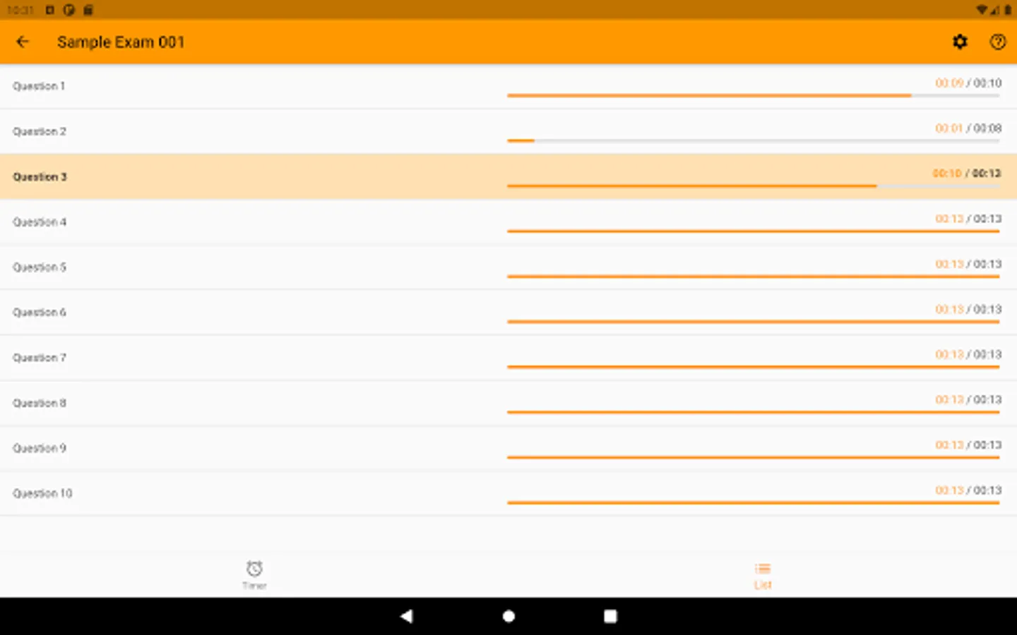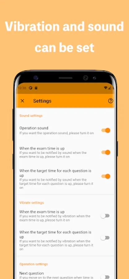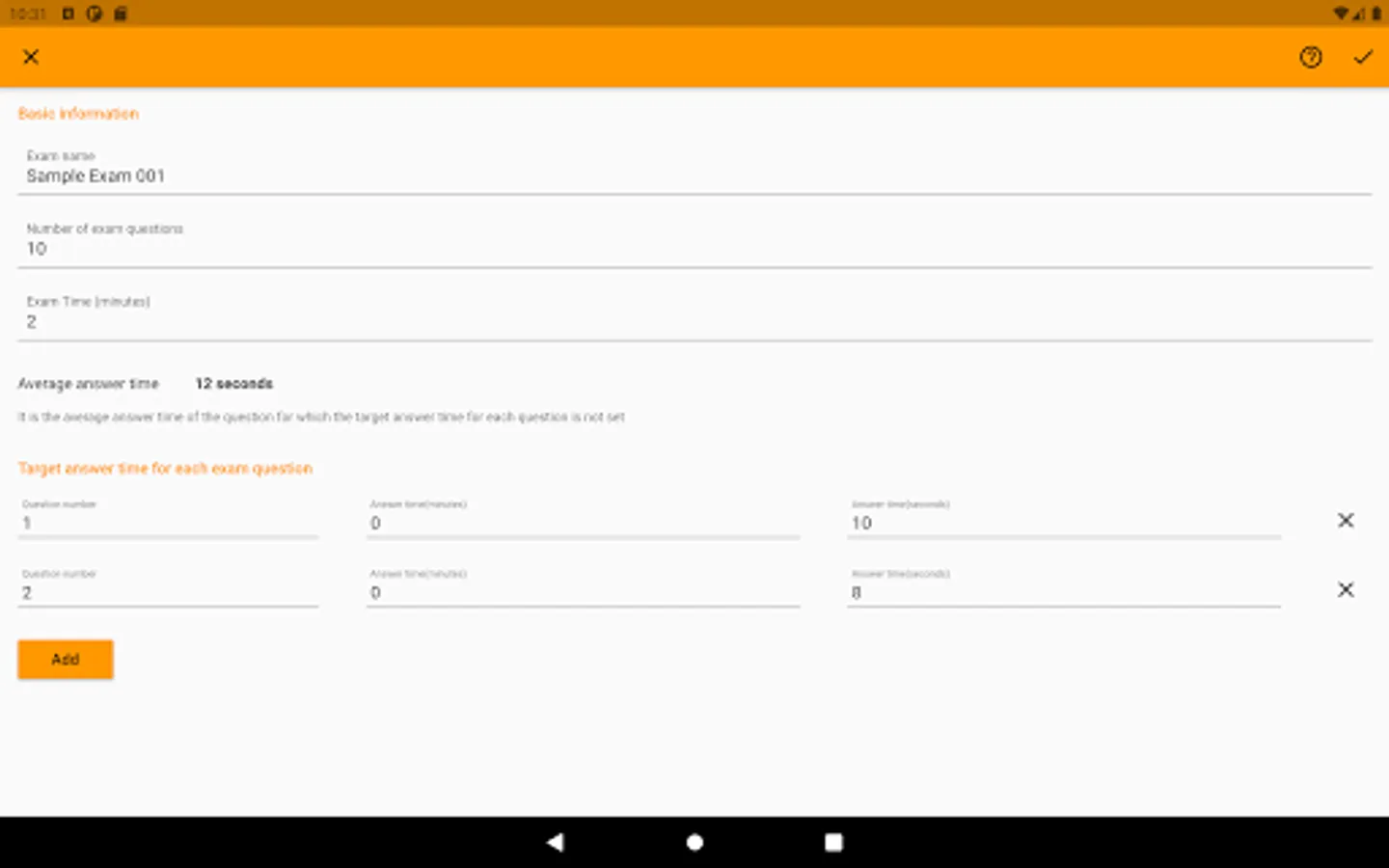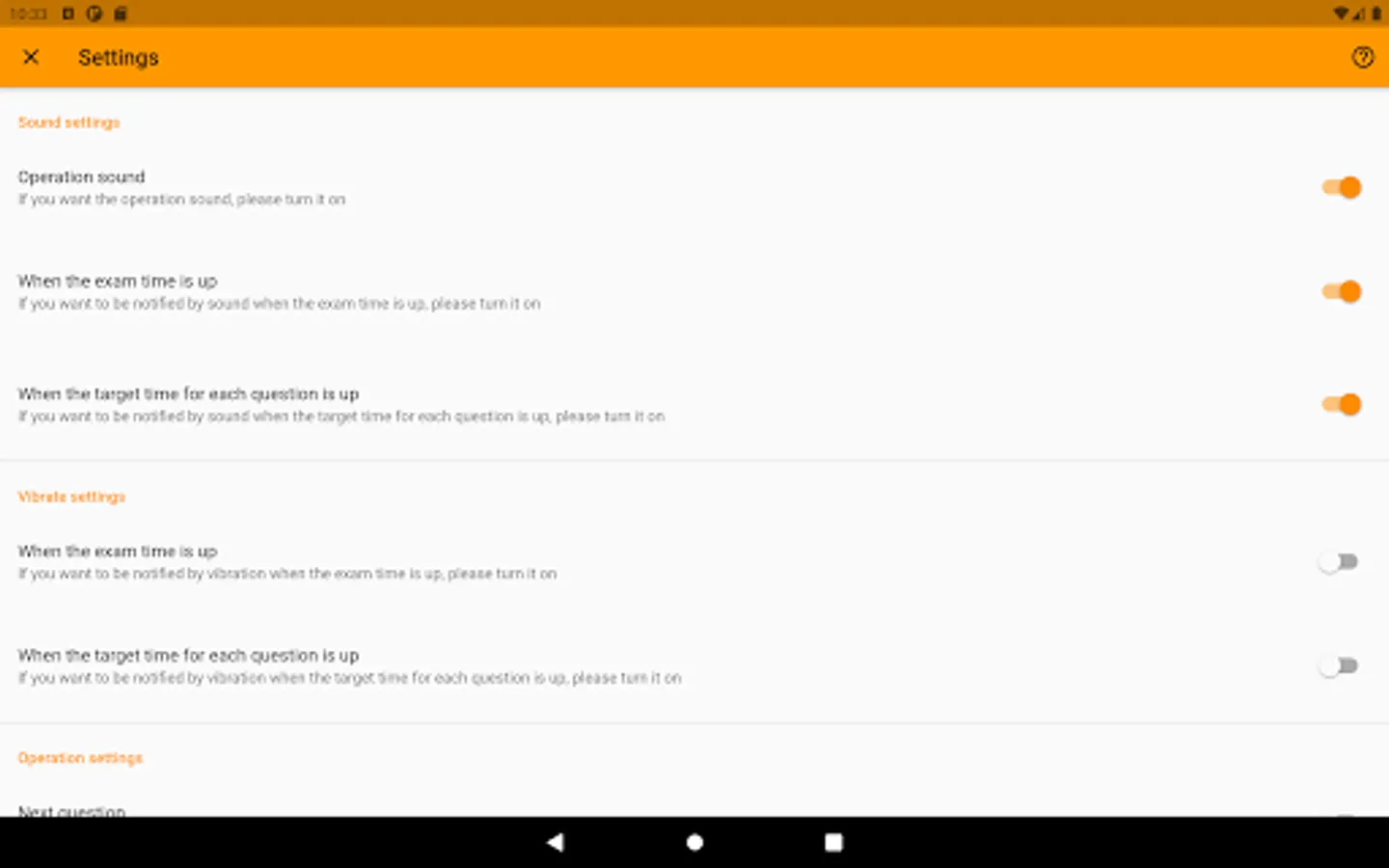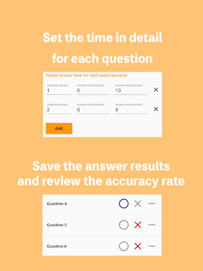 * Sound and vibration notifications when the target time for the entire exam or each question has expired