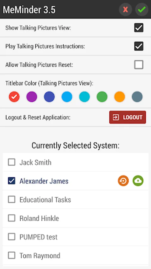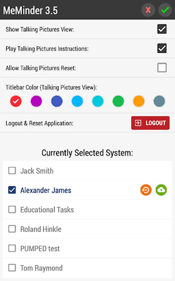 Simply switch from the consumer to the caregiver mode by tapping the gear icon in the upper right -hand corner (after pressing and holding the MeMinder icon in the upper left-hand corner until you hear the tone).