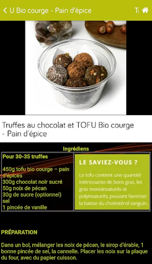 Le tofu frais se mange aussi bien chaud que froid et peut se préparer de diverses manières. Il s’allie à un très grand nombre de saveurs (légumes, épices), associé idéalement à une marinade.