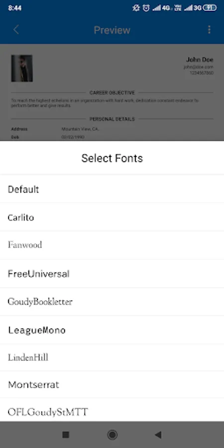 After that, you will have to select the resume template from 9 simple and attractive templates. You can change the font style from different available styles. You can also change the text color of the resume. Then you have to save the resume. It's done!