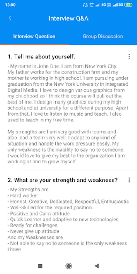 Interview question answers include some basic questions like "tell me about yourself", "your strength and weakness", "why should we hire you", "salary expectation", etc...